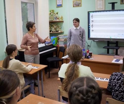 Интерактивные панели установлены в кабинетах музыкально-теоретических дисциплин. Преподаватели успешно осваивают их и постепенно внедряют новые технологии в образовательный процесс. По мнению преподавателей, уроки с применением современного оборудования стали более динамичны, разнообразны, дети с удовольствием выходят к доске отвечать.
