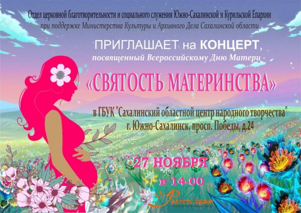 Творческие коллективы ДШИ "Этнос" примут участие в концерте, посвященном Всероссийскому Дню Матери 27 ноября в 14-00 в ГБУК "Сахалинский областной центр народного творчества"