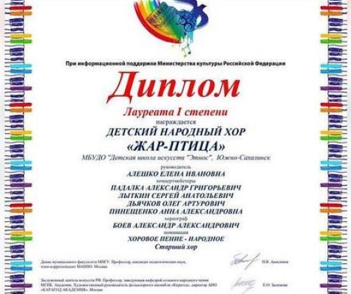 В номинации хоровое пение принял участие Детский народный хор «Жар-птица», руководитель Е.И.Алешко, балетмейстер А.Боев, концертмейстеры: С.Лыткин, О.Дьячков, А.Пинещенко.