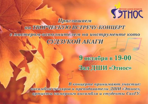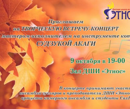 ПРИГЛАШАЕМ НА ТВОРЧЕСКУЮ ВСТРЕЧУ-КОНЦЕРТ С СУДЗУКОЙ АКАГИ