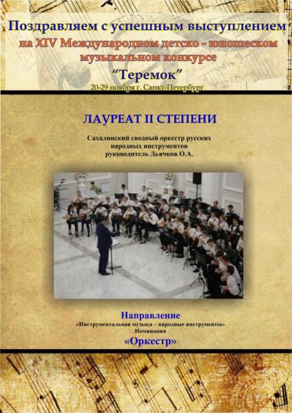 ПОЗДРАВЛЯЕМ САХАЛИНСКИЙ СВОДНЫЙ ОРКЕСТР РУССКИХ НАРОДНЫХ ИНСТРУМЕНТОВ!