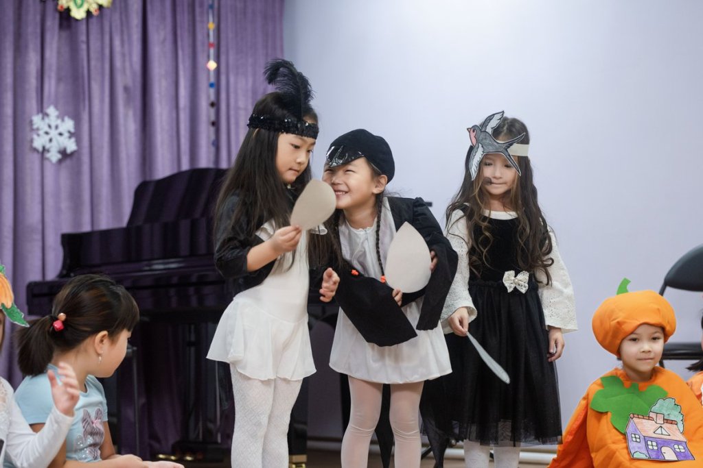 Урок фольклорной азбуки класса «Родничок» и «Ручеек» (5-6 лет) у преподавателя Кан А.В., в преддверии Нового года, прошел не стандартно. Дети стали участниками мини-спектакля по мотивам народной корейской сказки о двух братьях «Хын Бу и Ноль Бу». Конечно, дети вместе с родителями готовили костюмы, атрибуты, на уроке работали над ролью, репетировали. Такая работа позволяет совершенствовать монологическую и диалогическую речь. В процессе инсценирования сказки дети познакомились с новыми словами, терминами и оборотами речи, обогатили свой словарный запас. Важно, чтобы они не только понимали смысл и значение этих слов, но и умели употреблять их в речи, правильно произносить. Созданные живые картинки позволили им лучше понять мораль сказки, что добро всегда побеждает зло.